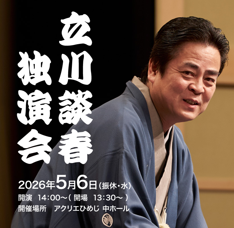 落語立川流の名手・立川談春が一人で高座に立ち、巧みな話芸で古典落語を披露する「立川談春独演会」が、5月6日(祝・水)にアクリエひめじで開催。播磨リビング新聞社では同公演のチケットを販売しています。