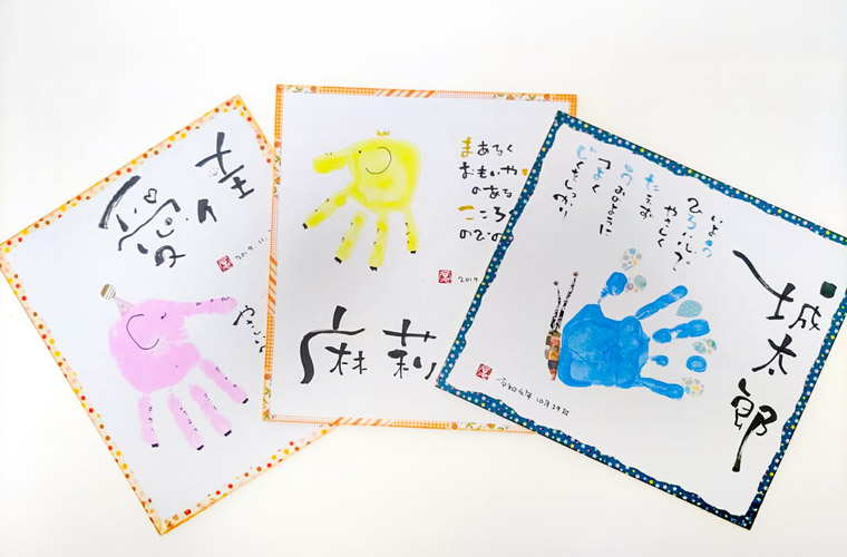ワークショップあり似顔絵をオーダーしませんか?写真からでもOK。待ち時間はお買い物を楽しんできてください。お渡しはお一人約20分。大切な瞬間を絵に残します。成長の記念に手形・足型つきの似顔絵も。