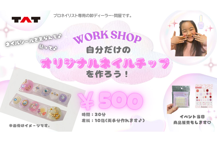 何度も使えるネイルチップ作りを体験していただけます。(10指分:¥500)