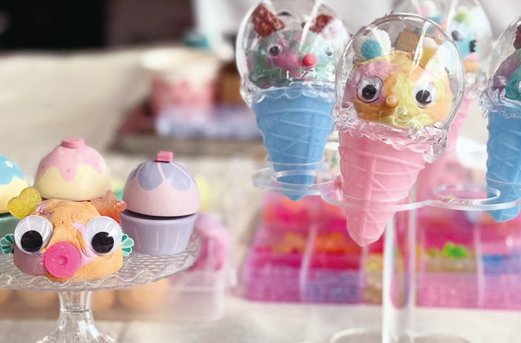 ワークショップあり自分好みにデコレーションしてパフェみたいな石けんが作れます。グリセリンソープなので鑑賞後は手や体を洗うのにも使えます。