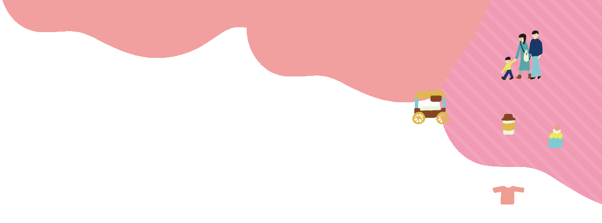 ワークショップありスタイを中心としたベビーアイテムの販売と子どもに大人気のキャンディバッグ等のキッズワークショップを楽しんで頂けます。
